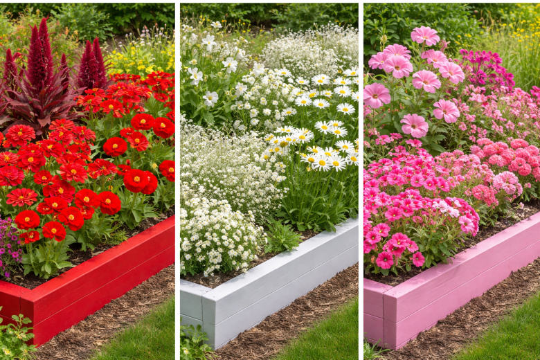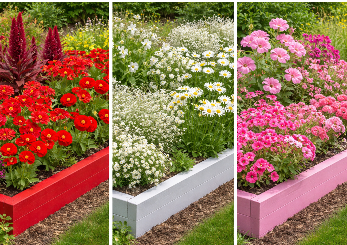 Красная клумба — яркий акцент, который сразу притягивает взгляд. Сею циннию красную, амарант декоративный, флоксы Друммонда красных оттенков и маки. Эти цветы хорошо сочетаются по высоте и дают насыщенный, «густой» цвет без провалов.