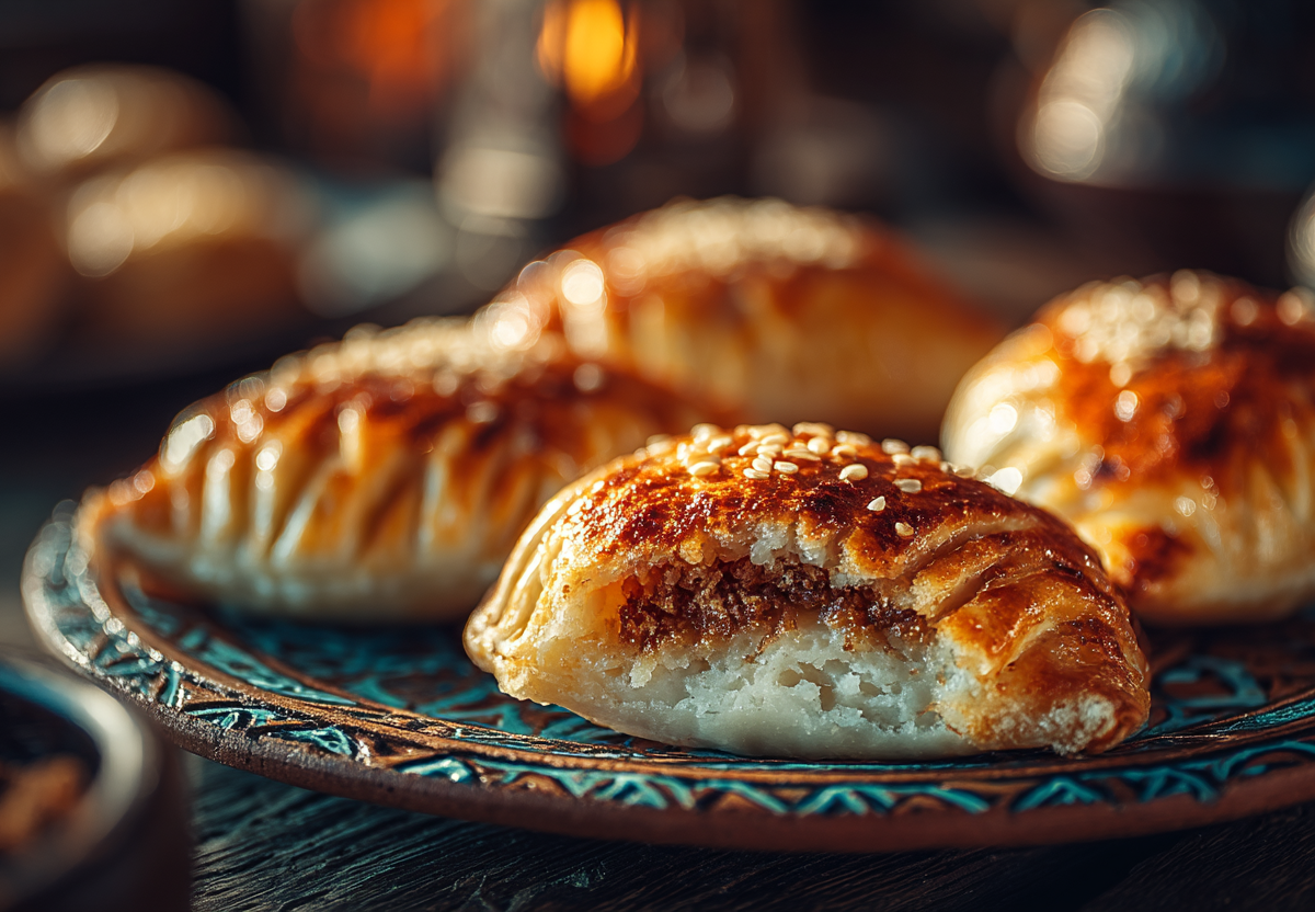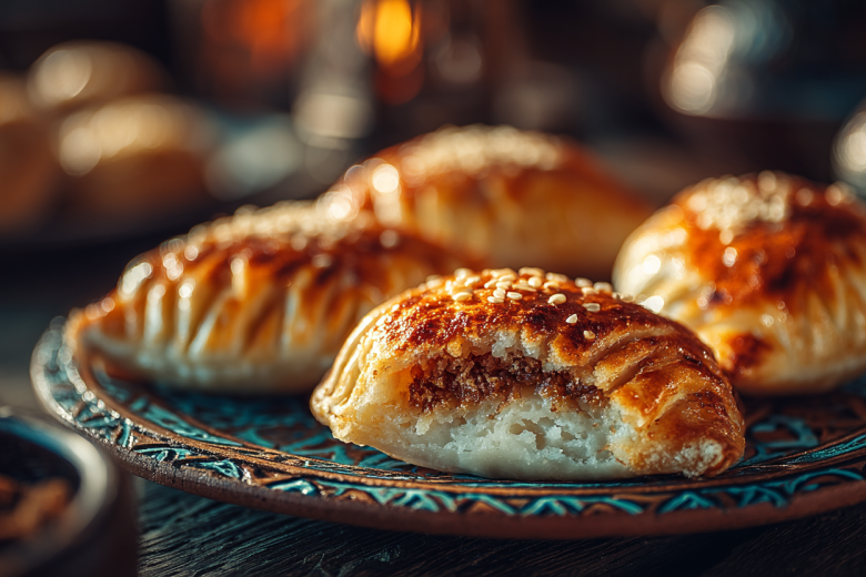 В центр выкладываем около чайной ложки ореховой начинки, складываем тесто пополам, формируя полумесяц, и тщательно защипываем края, при желании украшая их традиционным зубчатым узором.