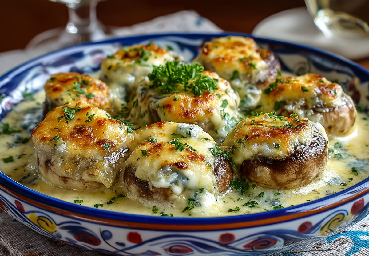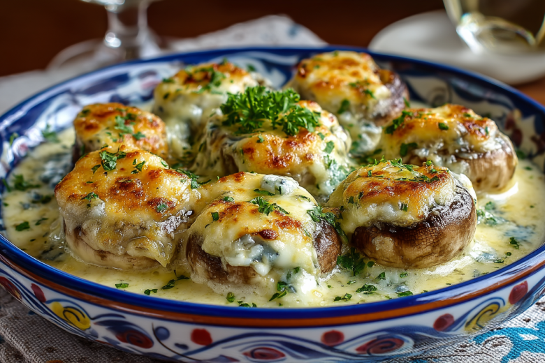 Получается обалденная вкуснятина: сочные шампиньоны в бархатистом сливочном соусе с чесночной ноткой, а сверху — тягучая сырная шапка из расплавленного сулугуни, которая делает каждый кусочек незабываемым.