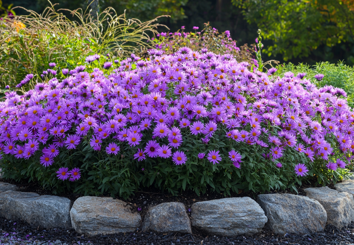 Хотите украсить сад растением, которое само формируется в шар, сплошь усыпанный цветами? Посадите астру кустарниковую — это от природы шарообразный многолетник. Он растет идеальным кустом, превращаясь в цветущее облако.