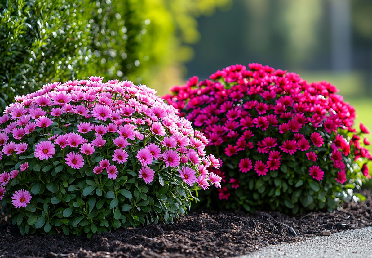 Среди многолетников лидирует астра кустарниковая, формирующая плотные сферические кустики высотой 30–50 см, которые осенью сплошь усыпаны ромашковидными соцветиями. Хвойный лидер — туя западная шаровидная, сорта которой, такие как «даника» и «глобоза», годами сохраняют идеальную форму.