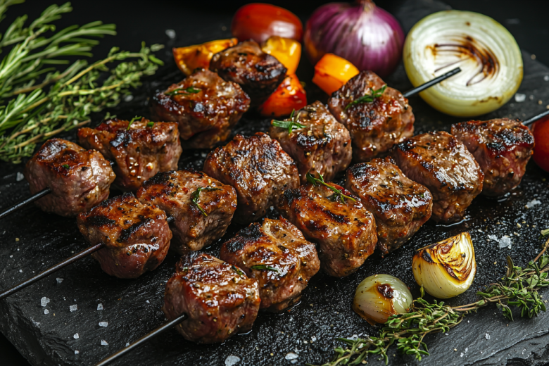 На 1,5 кг мяса вам следует взять 3 средних или больших луковички, 2 ст. ложки горчицы, 4 ложки кефира, чуть-чуть растительного или оливкового масла, соль и свежемолотый перец. Лук нарезаем колечками и слегка разминаем — чтобы дал сок. В глубокой миске смешиваем лук, кефир, горчицу и специи. Мясо нарезаем крупными кусками и кладем в маринад. Оставляем минимум на 3–4 часа при комнатной температуре или убираем в холодильник на ночь. Жарить советуем на углях до румяной корочки, переворачивая по мере необходимости.
