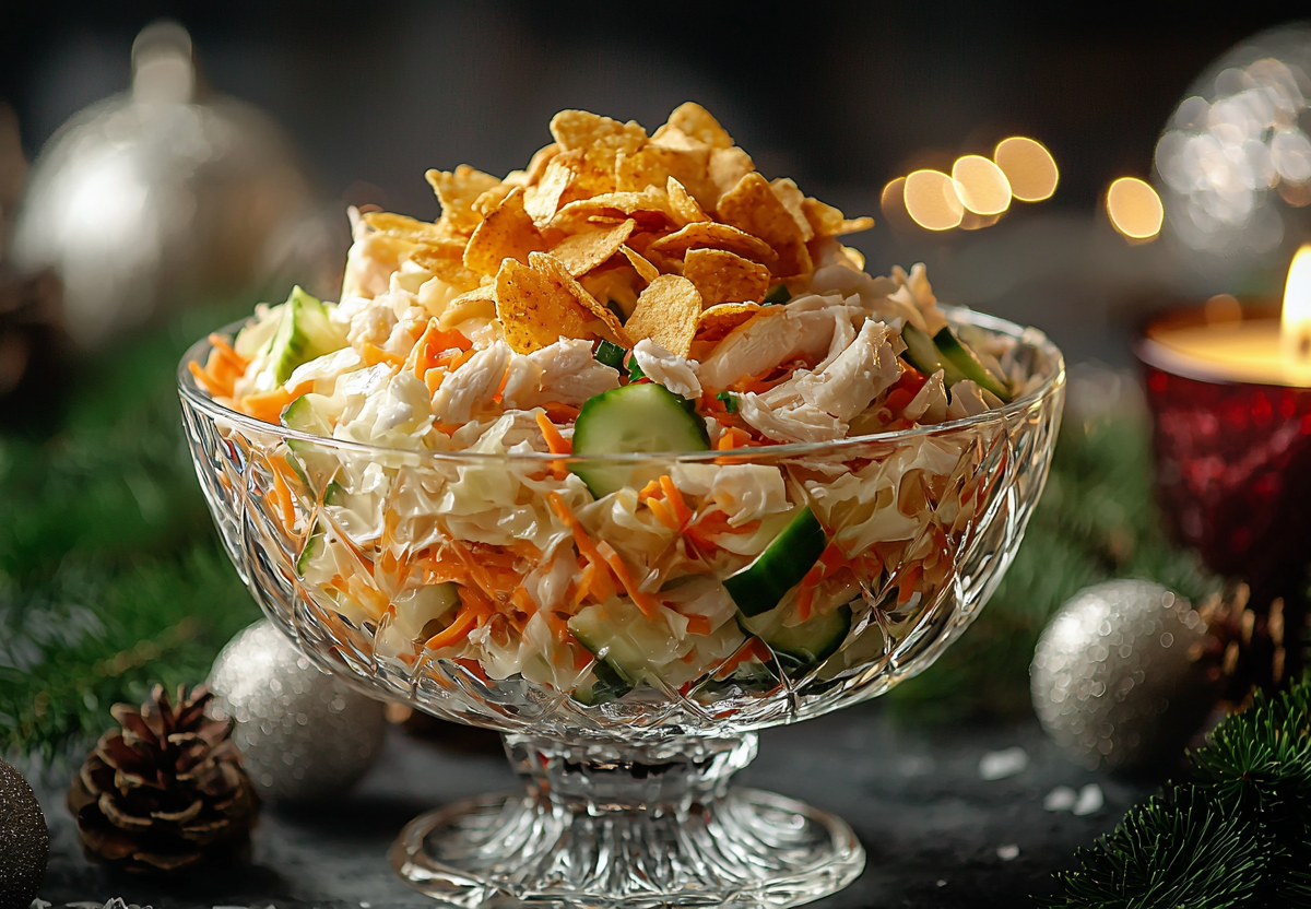 Шедевральный капустный салат с чипсами: нежный, хрустящий и готовится за 10 минут