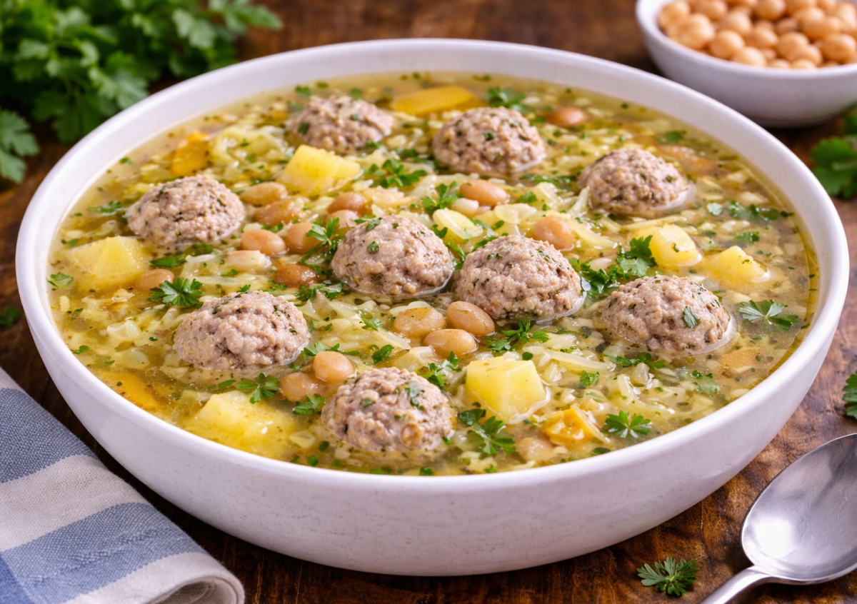 Этот капустный суп с фрикадельками выручает, когда хочется чего-то домашнего, но без лишней тяжести. Фрикадельки делают его насыщенным, капуста добавляет свежесть, а консервированная фасоль экономит время и упрощает приготовление. Готовится просто, а вкус получается мягким и сбалансированным.