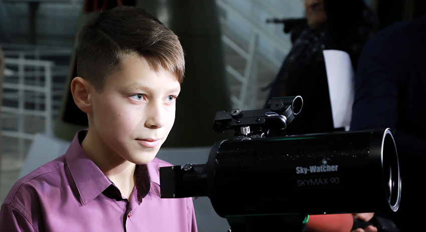 Десятилетний школьник из красноярского посёлка Абан Дима Шахин получил в подарок от президента Российской Федерации Владимира Путина телескоп для наблюдения за небесными объектами.