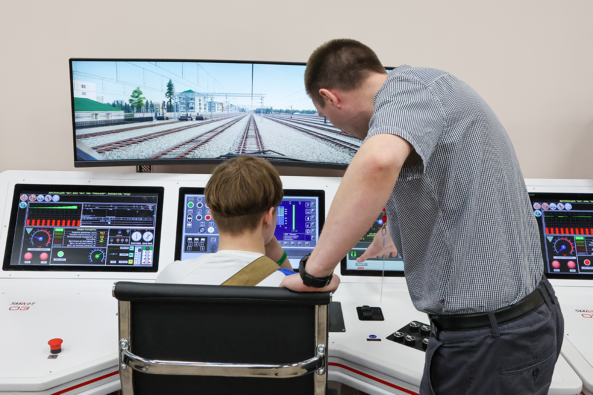 Занятия на тренажере машиниста в день открытых дверей в колледже Московского транспорта Занятия на тренажере машиниста в день открытых дверей в колледже Московского транспорта Фото: Алексей Белкин/NEWS.ru