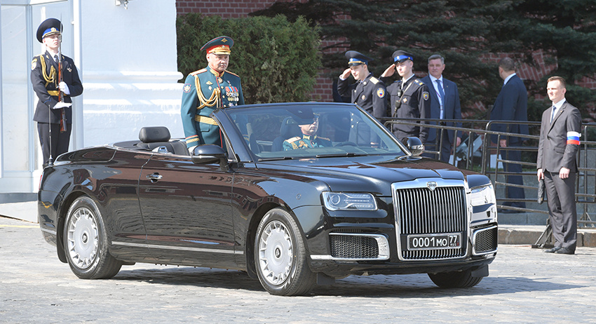 Для парада Победы подготовлены три автомобиля, один из них станет запасным. Кабриолетам Минобороны присвоены номера 001MO, 002MO и 003МО. В прежние годы на парадах использовались ЗИЛы.