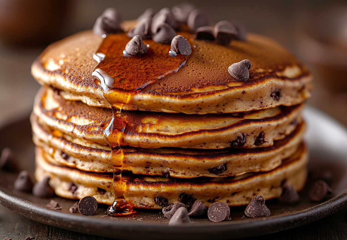 Способ приготовления прост: смешайте теплый кефир с содой и подождите, пока зашипит, потом добавьте яйцо и сахар. Просейте муку, добавьте какао и ванилин, тщательно перемешайте. В последнюю очередь аккуратно вмешайте кусочки шоколада. Выпекайте блины на раскалённой сковороде с минимальным количеством масла. Такие панкейки будут радовать глаз, манить ароматом и дарить заряд позитивных эмоций. Можно подавать со сгущёнкой, джемом или ягодами — выбирайте, что душе угодно.