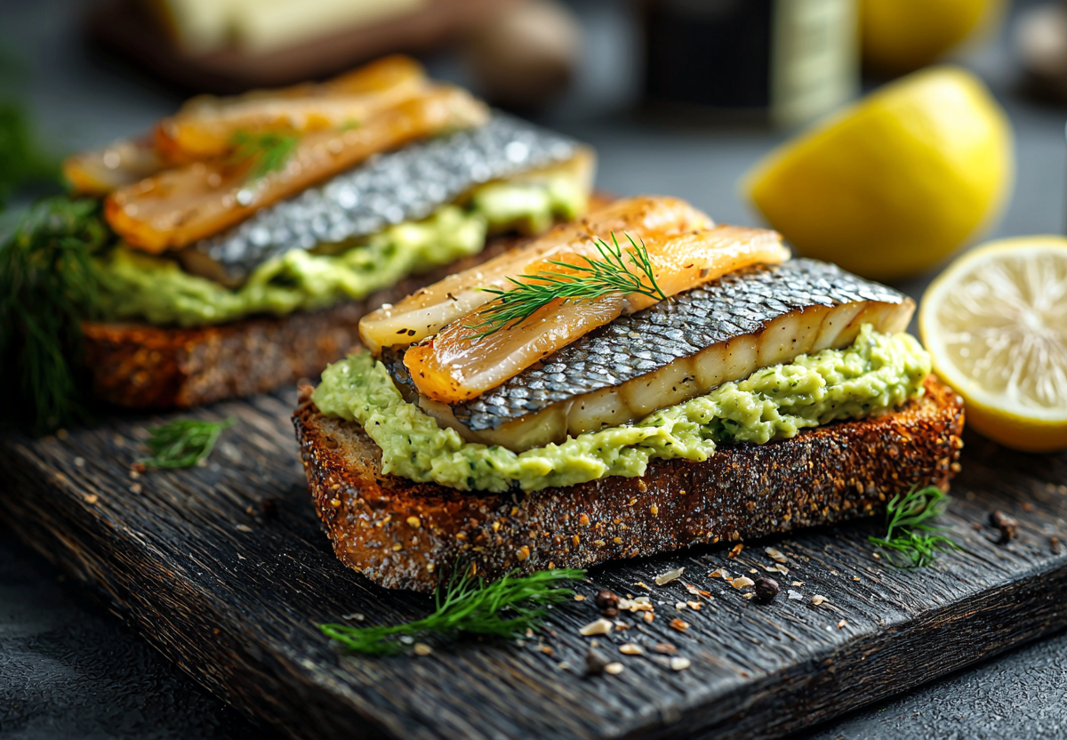 Польза: полезные жиры из авокадо, белок из творога и рыбы, клетчатка из цельнозернового хлеба.