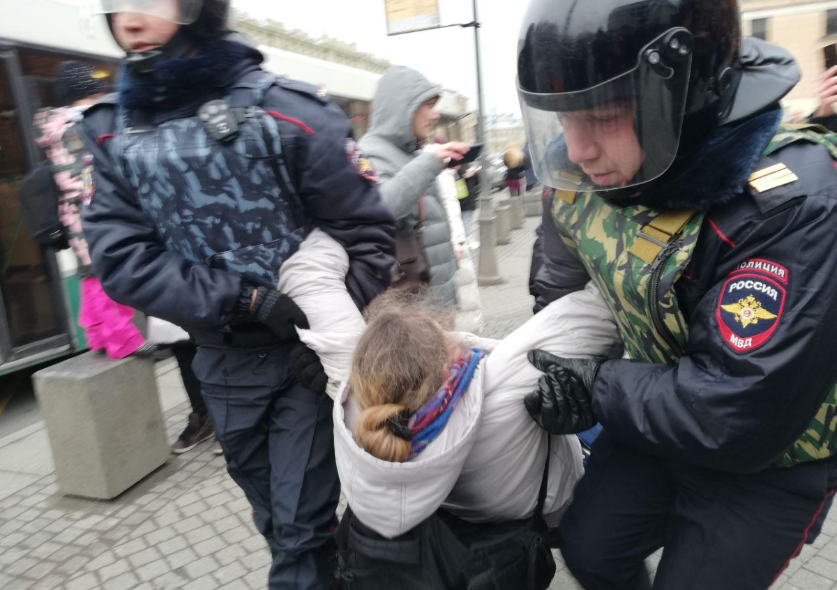Больше 10 человек были доставлены в полицию во время митинга против внесения изменений в Конституцию, прошедшего в Санкт-Петербурге.