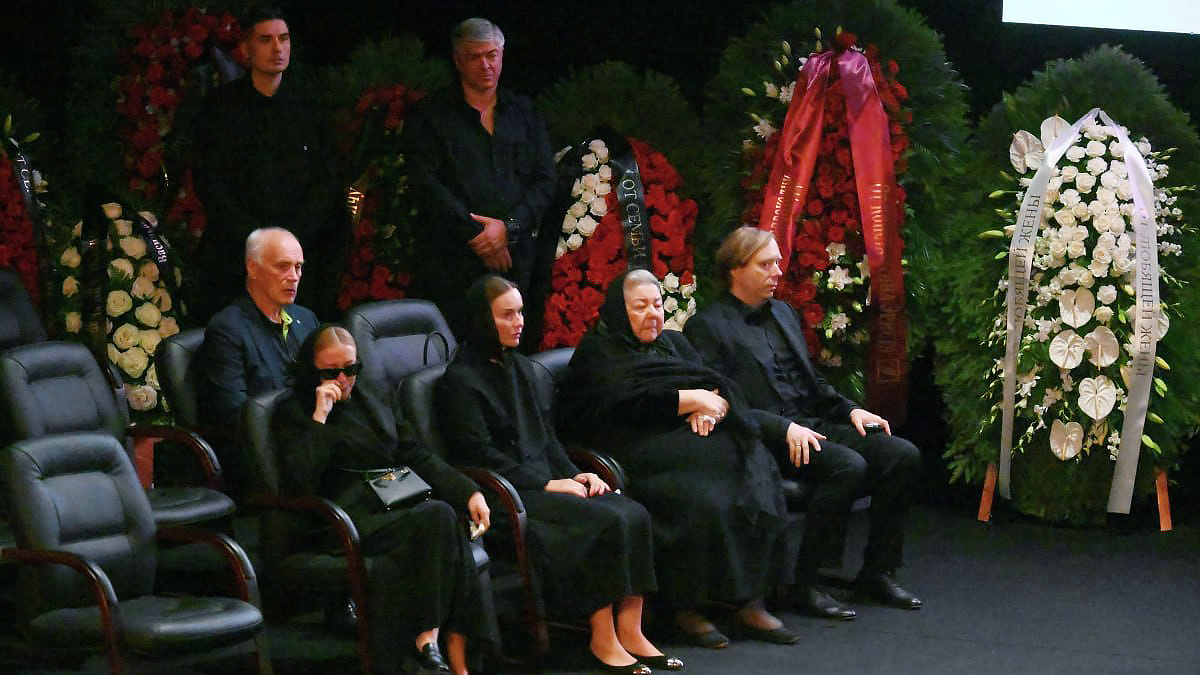 Церемония прощания с ведущим Клуба веселых и находчивых проходит в эти минуты в концертном зале Московского молодежного центра «Планета КВН». У гроба с телом ведущего сидит его безутешная семья — супруга Светлана Маслякова и сын Александр Масляков — младший.