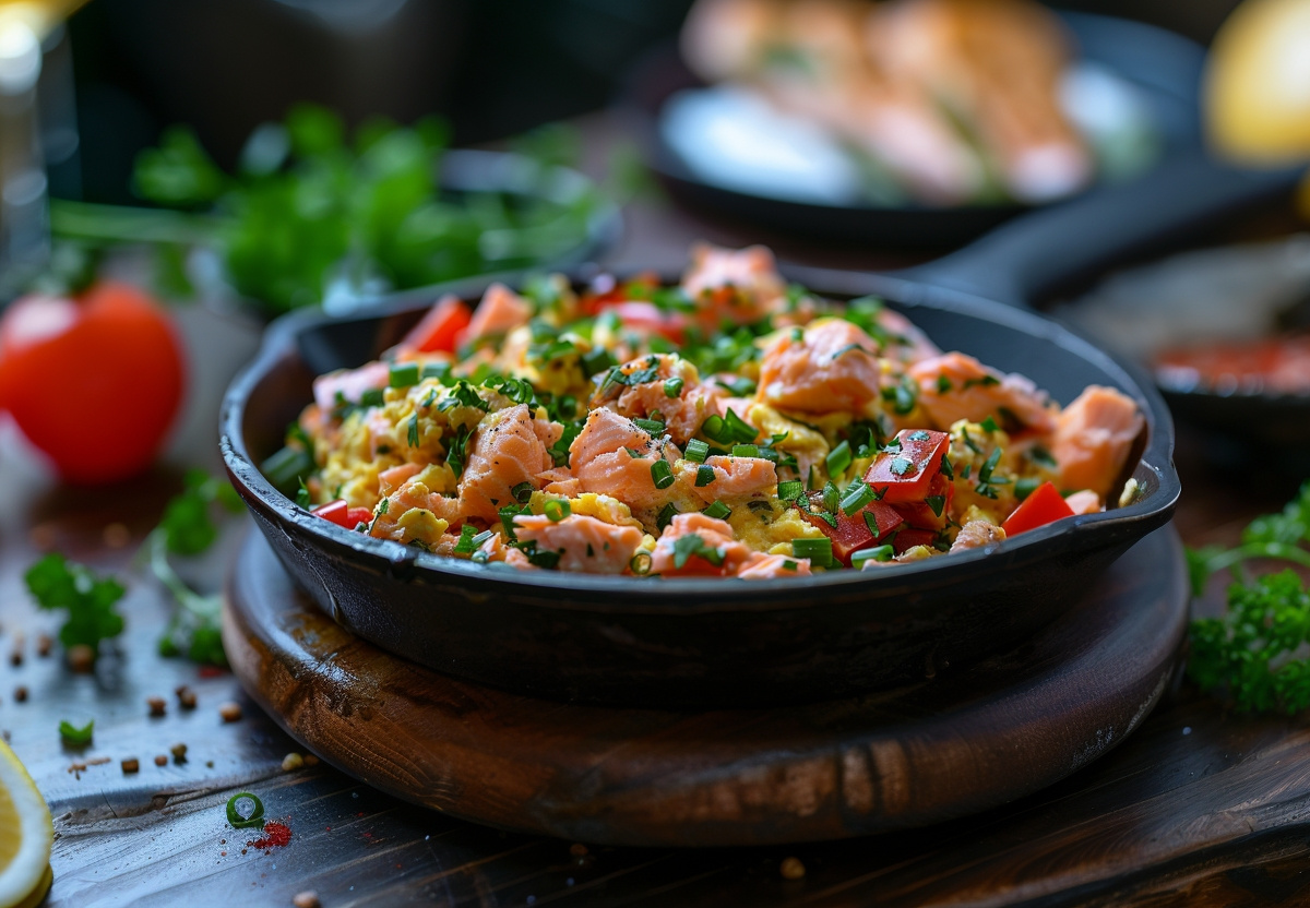 Вы приготовили американскую яичницу-болтунью — скрэмбл с лососем.