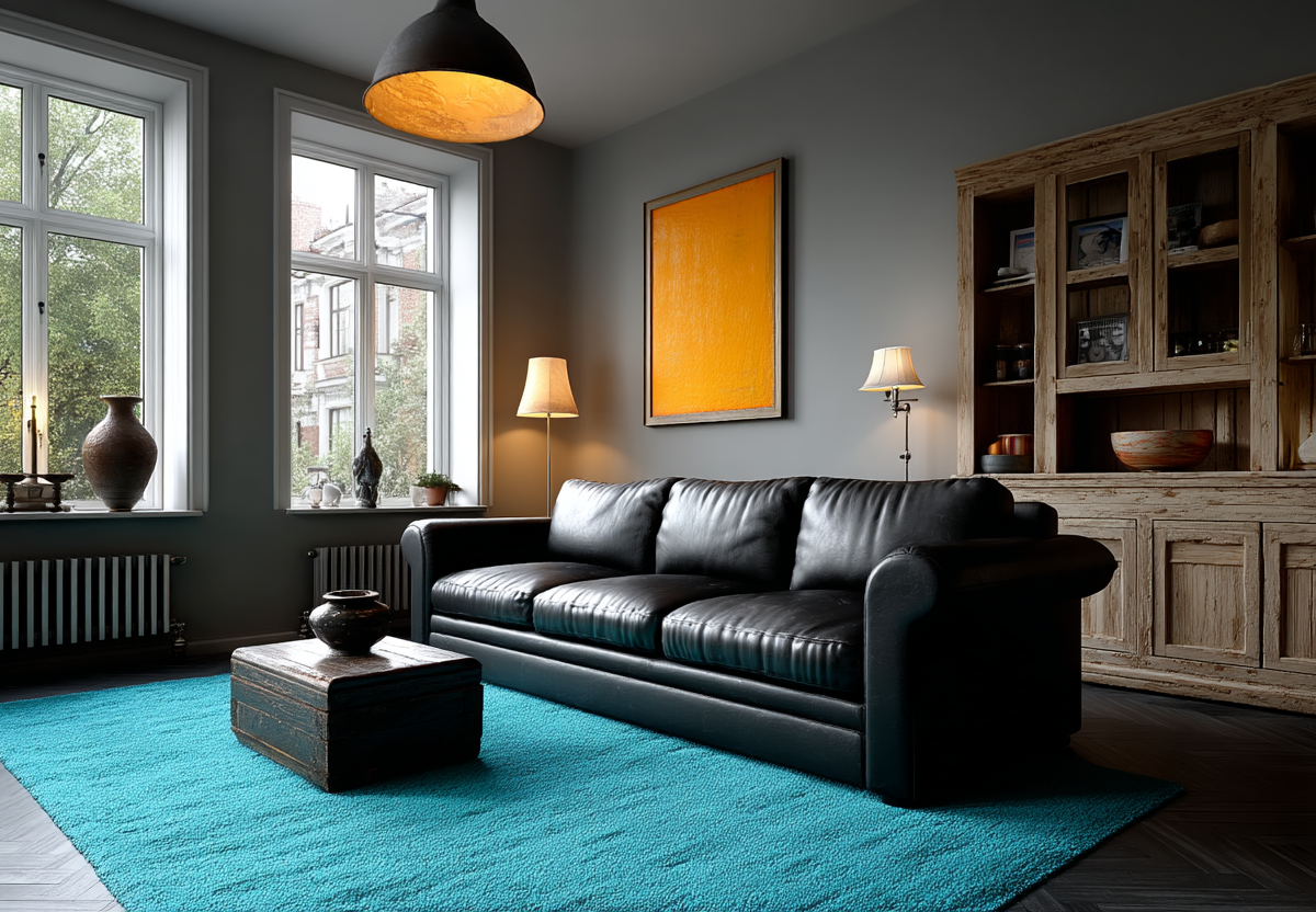 Попробуйте сыграть на контрастах: гладкий кожаный диван отлично смотрится с грубоватой деревянной полкой, а один яркий акцент — например, бирюзовый ковер или оранжевая картина — сразу оживит нейтральную гамму. Не забывайте про свет: торшеры, бра и скрытая подсветка создают удивительную игру теней.