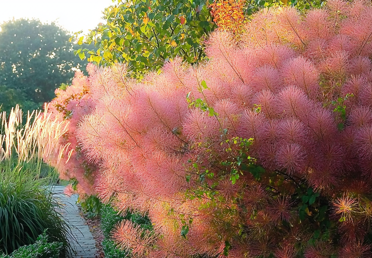 Скумпия — идеальный выбор для тех, кто хочет посадить «декорацию» один раз и любоваться ею десятилетиями.