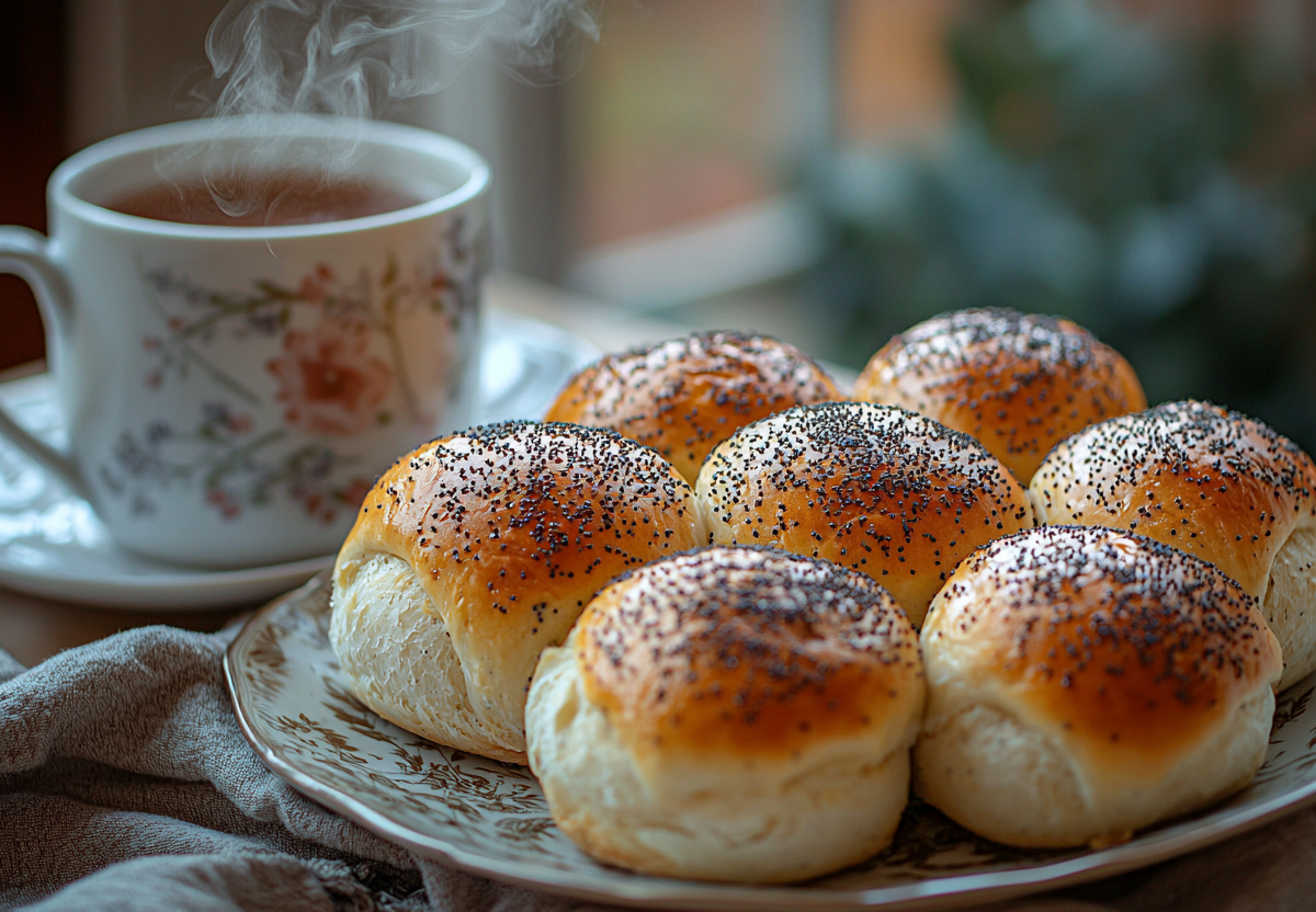 Для приготовления смешайте 500 г муки, 100 г сахара, 10 г сухих дрожжей, щепотку соли, 250 мл теплого молока и 50 г растопленного сливочного масла. Секретный ингредиент — 2 ст. л. сметаны: она придает тесту нежность и замедляет очерствение. Замесите эластичное тесто, оставьте под полотенцем на 1,5 часа в тепле. Обомните, сформируйте шесть шариков и выложите их на противень в форме цветка, дайте подойти еще 30 минут. Выпекайте при 180 °C 25–30 минут, смазав желтком для глянцевой корочки.