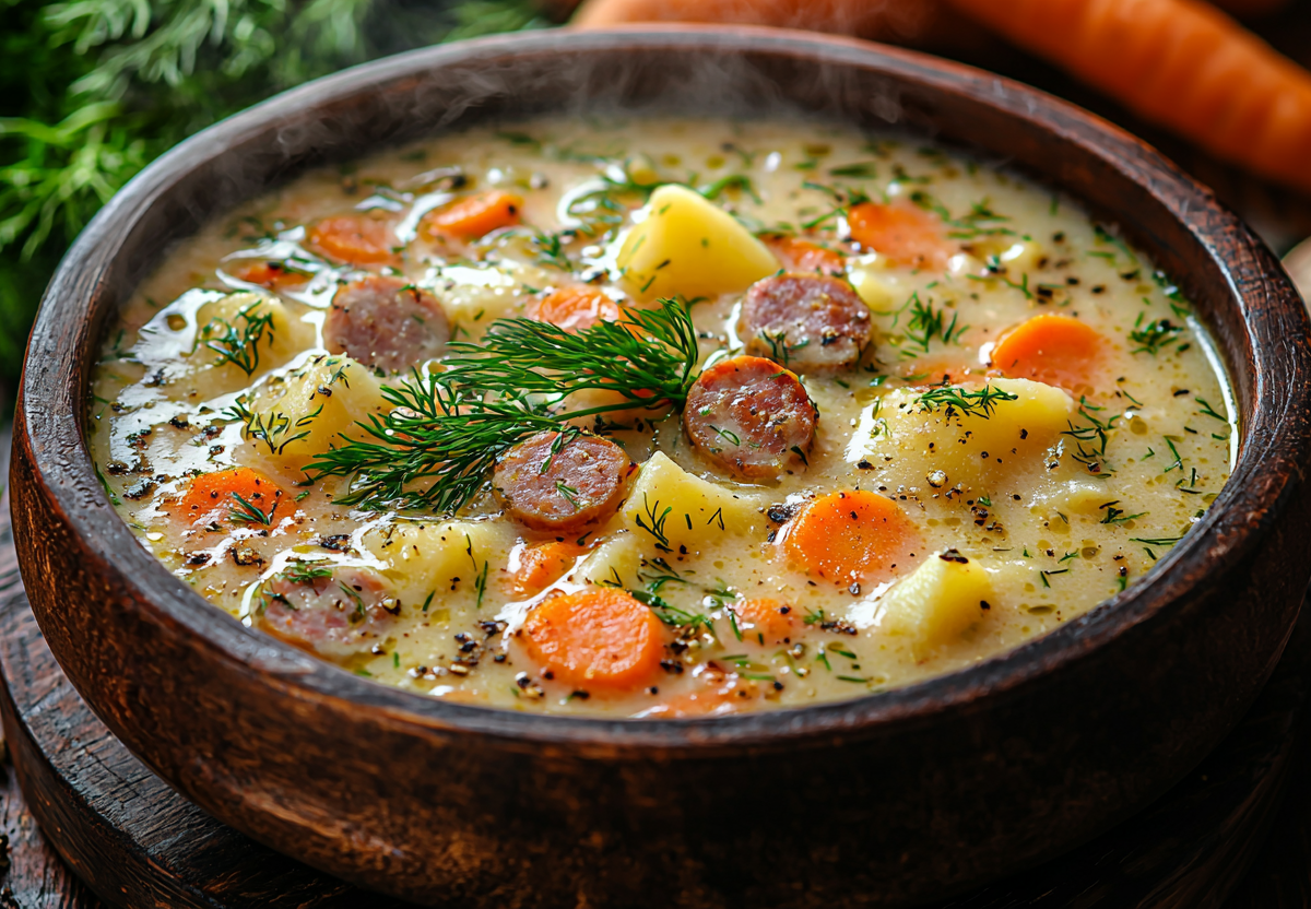 Сливочный суп с охотничьими колбасками! Простой и варится в одной кастрюле! Ароматный, насыщенный и невероятно вкусный суп с нежной сливочной основой и пикантными охотничьими колбасками. Идеальное блюдо для сытного обеда, которое согреет в холодный день и порадует всю семью!
