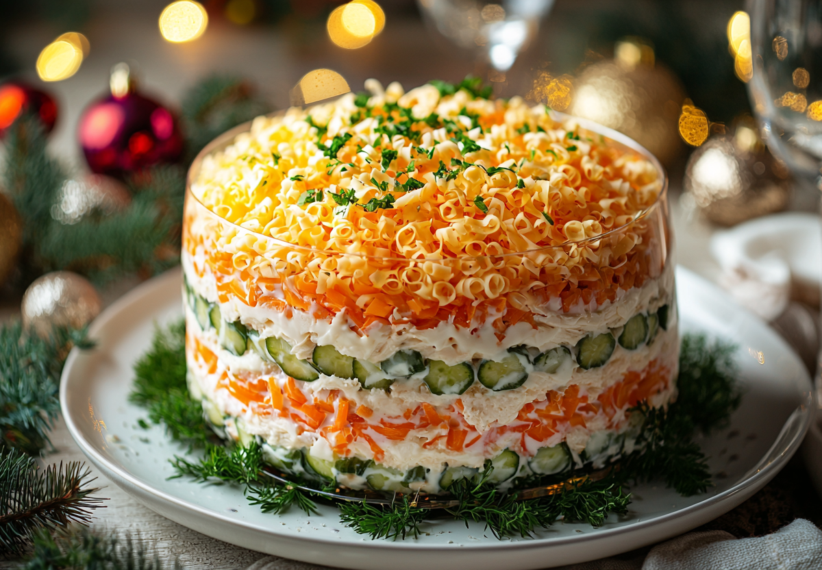 Слой чесночного сыра делает этот салат непохожим на другие: готовим «Симфонию» на Новый год