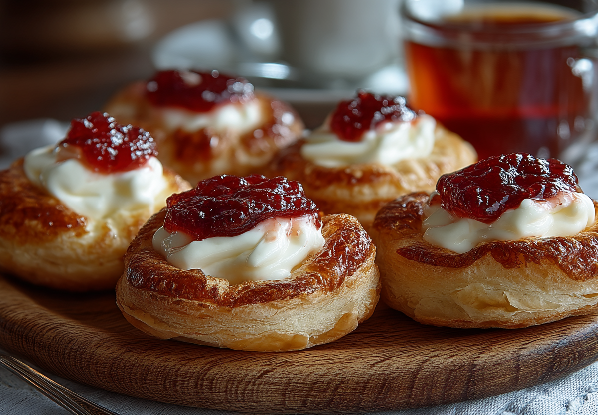 Хрустящие слоистые корзиночки из теста создают воздушную текстуру, а внутри — мягкая творожная начинка, дополненная капелькой варенья.