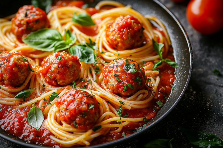 Рецепт: на сковороде сделайте зажарку из 1 луковицы и 1 моркови. Поверх уложите 200 г сухих макарон-гнезд, в каждое из которых выложите шарик из фарша. Залейте 500 мл томатного сока или смеси воды с томатной пастой, добавьте специи по вкусу. Доведите до кипения, накройте крышкой и томите на медленном огне 30 минут. За 5 минут до готовности посыпьте 100 г тертого сыра.