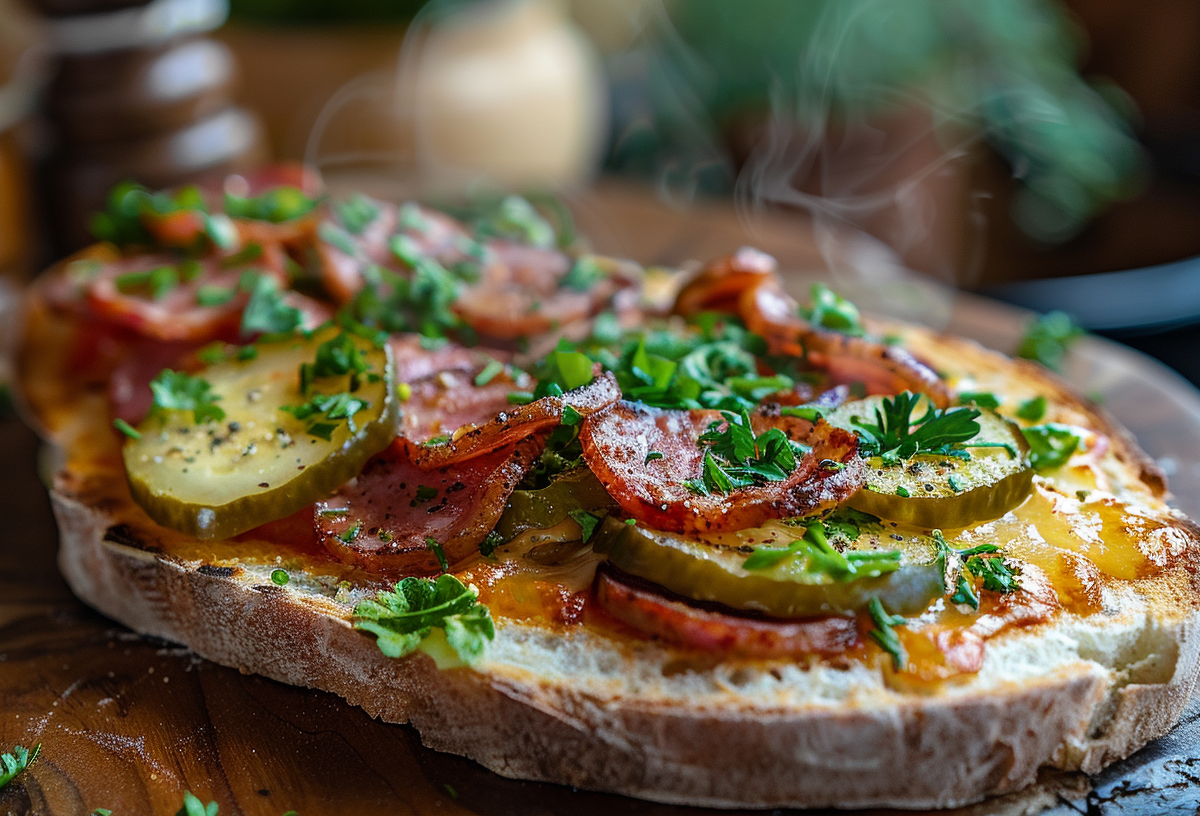 Разогрейте духовку до 180–200 °C. Поставьте смаженку на противень (можно застелить пергаментом). Запекайте 8–12 минут, или пока сыр полностью не расплавится и не начнет слегка пузыриться и золотиться, а булка снизу подрумянится. Внимание: время зависит от мощности духовки и толщины булки. Следите, чтобы низ не подгорел.