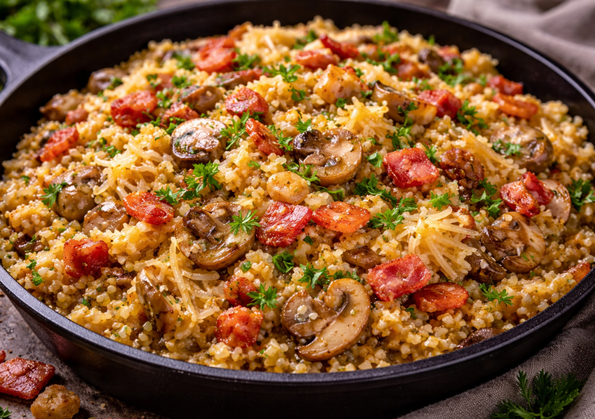 Иногда самые простые продукты дают неожиданный результат. Стоит соединить капусту, булгур и румяный бекон в одной сковороде — и получается ароматное сытное рагу, которое идеально подходит для обычного ужина. Все готовится довольно быстро, а вкус выходит насыщенным, домашним и очень аппетитным.