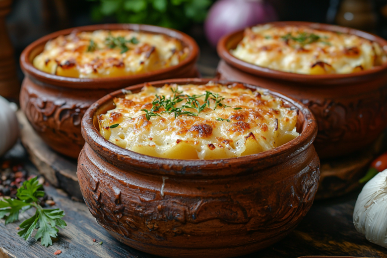 Для приготовления вам понадобится: 500 г куриного филе, 4–5 картофелин, 1 луковица, 1 морковь, 200 г сметаны, 100 г сыра, 2 зубчика чеснока, соль, перец, паприка, зелень. Курицу и картофель нарежьте кубиками, лук и морковь измельчите. Обжарьте лук и морковь до мягкости. В горшочки слоями выложите картофель, курицу и овощную зажарку. Приправьте специями. Смешайте сметану с давленым чесноком и 100 мл воды, залейте в горшочки. Посыпьте тертым сыром. Накройте крышками и запекайте 40 минут при 200°C, затем откройте и готовьте еще 15 минут до румяной корочки. Подавайте прямо в горшочках, посыпав зеленью.