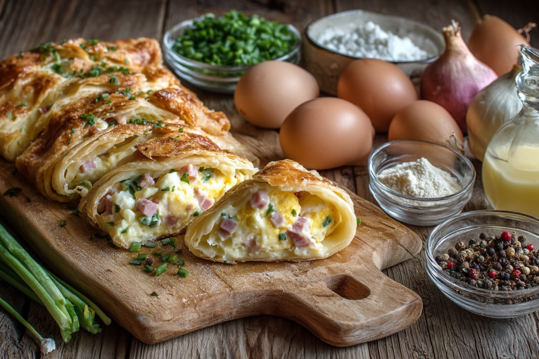 Беру готовое слоеное тесто, ветчину, вареные яйца и зеленый лук — нарезаю начинку, выкладываю на полоски теста, складываю ракушками, и через 20 минут на столе хрустящие, слоистые изделия, которые получаются вкуснее пирожков и сытнее бутербродов. Это гениально простое и невероятно вкусное блюдо, идеальное для завтрака, перекуса или праздничного стола.