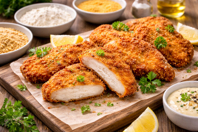 В итоге получается сочное мясо внутри и хрустящая оболочка снаружи — тот самый эффект, за который шницели любят в ресторанах.