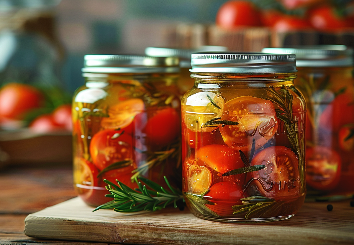 Стерилизуем банки и заливаем овощи с пряностями горячим маринадом. И все! Эти необычные вяленые помидоры на зиму понравятся всей семье!