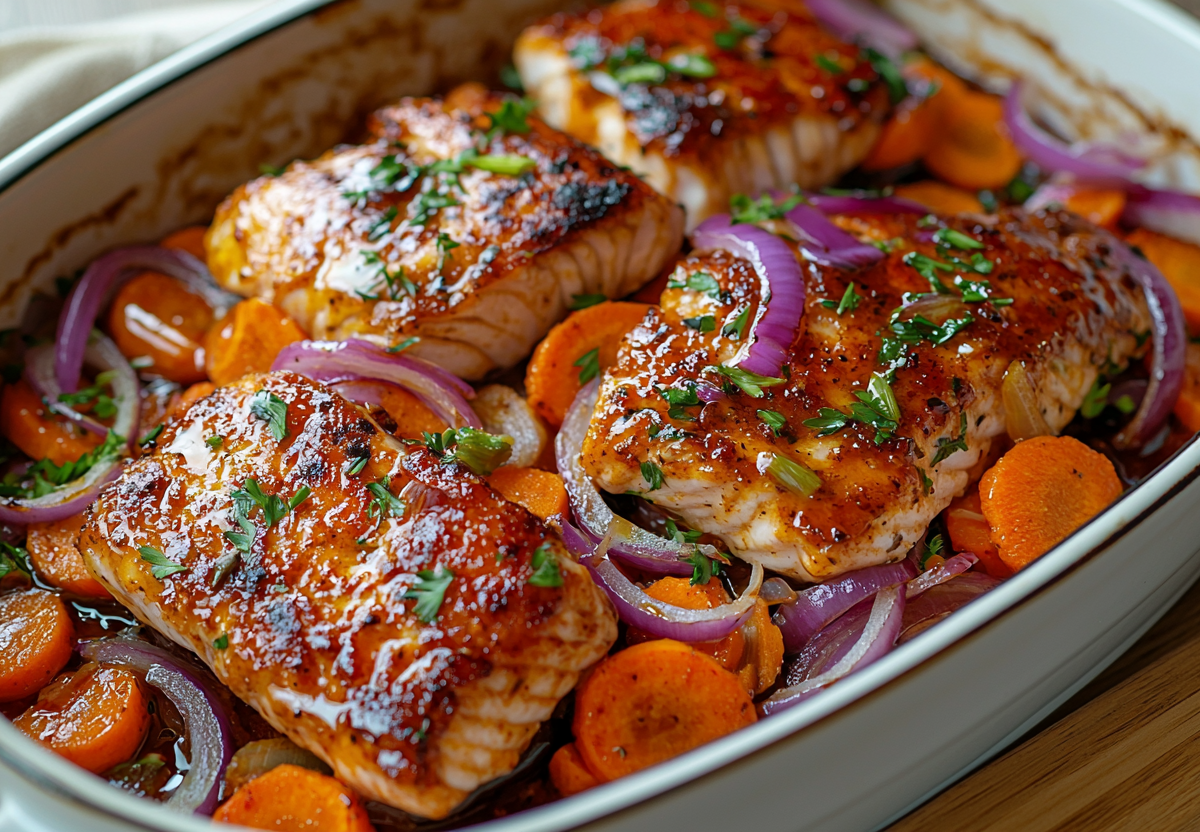 Горбуша под луково-морковной шубой — сочная и ароматная! Этот рецепт превратит скромное филе горбуши в праздничное блюдо — нежное, сочное мясо под сладковатой овощной подушкой. Простота приготовления и потрясающий результат!