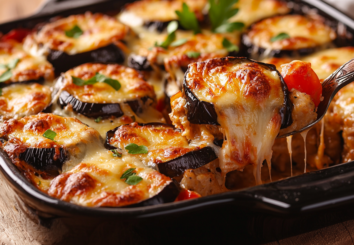 Запеченные баклажаны со свининой — это сочное блюдо с насыщенным вкусом, где нежная мякоть баклажанов пропитывается мясным соком, а свинина приобретает пикантные овощные нотки.