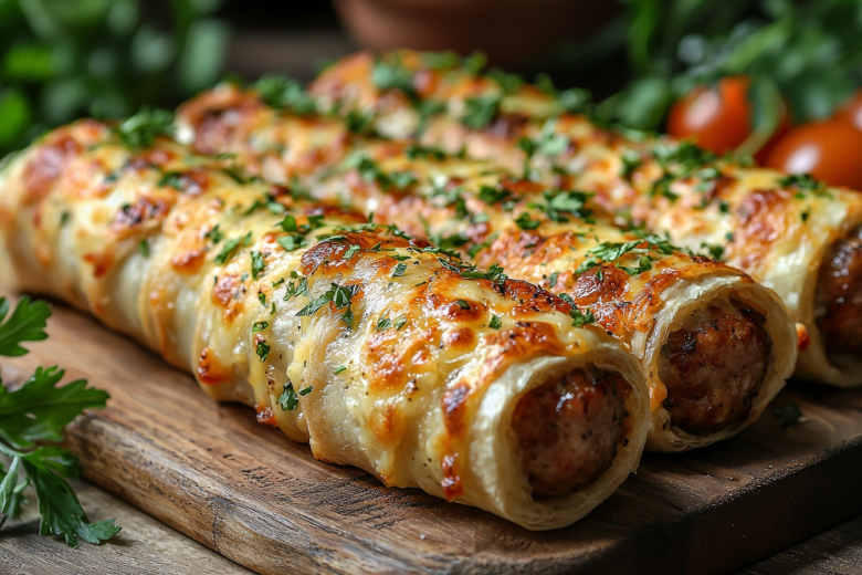 На край каждой полоски лаваша выкладываю немного сыра, кладу сосиску и плотно заворачиваю, смазывая край яичной смесью для склеивания. Разогреваю сковороду с небольшим количеством масла. Каждую завернутую сосиску обмакиваю в яичную смесь и обжариваю со всех сторон до золотистой корочки. Подаю сразу, пока лаваш хрустящий, а сыр внутри тягучий и горячий.
