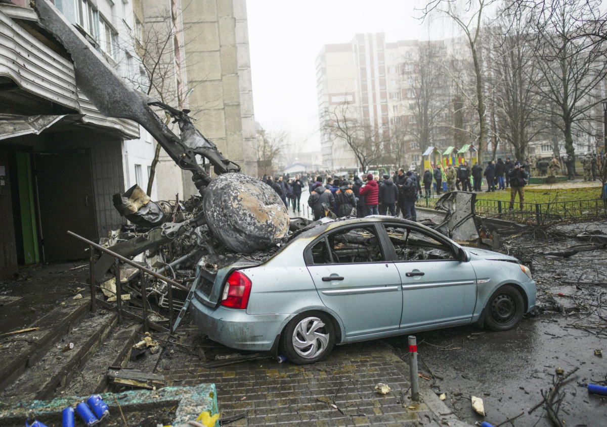 По словам советника главы ведомства Антон Геращенко, погибли глава МВД Денис Монастырский, его первый заместитель Евгений Енин и госсекретарь МВД Юрий Лубкович. Среди возможных причин крушения он назвал неисправность техники, нарушение правил безопасности и диверсию.