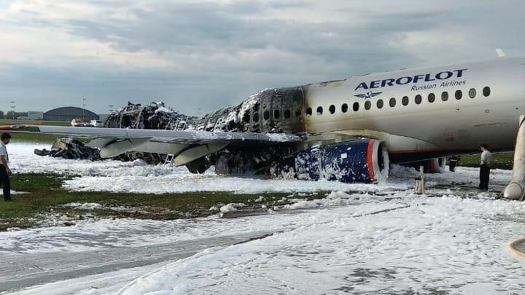 SSJ 100 совершил жёсткую посадку в столичном аэропорту Шереметьево вечером 5 мая. После приземления самолёт загорелся. В результате катастрофы погиб 41 человек. Всего на борту находились 73 пассажира и пятеро членов экипажа. СК назвал несколько версий трагедии. Среди них — недостаточная квалификация пилотов и лиц, проводивших технический осмотр борта, неисправность воздушного судна и сложные метеоусловия.