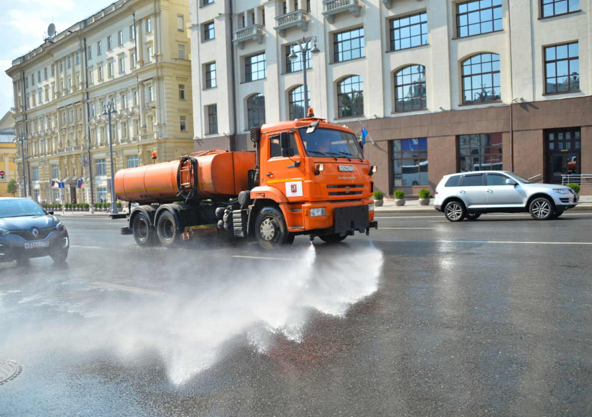 Поливочные машины охлаждают не только дорожное полотно, но и воздух, который нагревается от асфальта. Об этом сообщил руководитель ГБУ «Автомобильные дороги» Александр Орешкин.