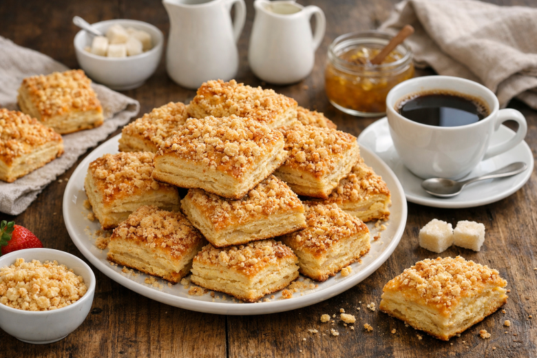 Тесто получается нежное и податливое, а крошка сверху дает ту самую аппетитную текстуру.