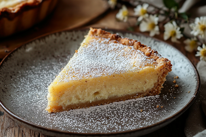 Для теста 250 г муки смешиваю с 1 ч. л. разрыхлителя. 100 г холодного сливочного масла нарезаю кубиками и растираю с мукой пальцами в мелкую крошку. Добавляю 80 г сахара и яйцо. Быстро замешиваю гладкое тесто, формирую шар, заворачиваю в пленку и убираю в холодильник на 30 минут. Для начинки в миске смешиваю 380 г вареной сгущенки, 2 яйца и 150 г сметаны. Взбиваю венчиком до однородной гладкой массы. Охлажденное тесто раскатываю в круг по размеру формы (26 см), выкладываю в форму, формирую бортики. Вилкой делаю несколько проколов по дну. Сверху выливаю подготовленную сметанную начинку. Разравниваю. Отправляю пирог в разогретую до 180 °C духовку на 35–45 минут. Готовность проверяю по начинке: она должна схватиться, перестать дрожать и слегка подрумяниться сверху. Даю пирогу полностью остыть в форме, только затем нарезаю. При подаче можно посыпать сахарной пудрой.