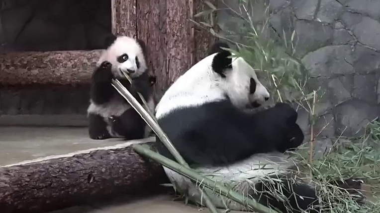Жуи достаточно долго гулял сегодня в уличном вольере, но потом присмотрел грот в стене — и там отдыхал. Диндин и Катюша в целом сейчас живут исключительно во внутреннем вольере, вдали от непогоды, — добавили в организации.