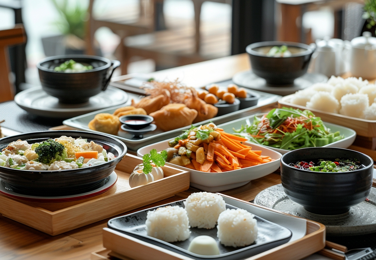 Обед предполагает закуску, суп, горячее на выбор, десерт и напиток. Также представлен сет для вегетарианцев. Создатели меню включили рукколу с телятиной, уху из форели и сига, каре ягненка с печеными овощами и соусом из трав, филе морского карася с овощным жульеном и «Наполеон» со свежими ягодами. В качестве напитка предлагается минеральная вода, чай, кофе или ягодный морс.