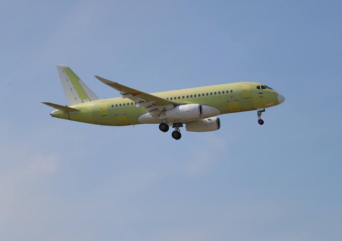 SJ 100 является импортозамещенной версией ближнемагистрального SSJ 100. Российский самолет совершил свой первый выход в небо 29 августа. Продолжительность его полета составила 54 минуты. Самолету удалось подняться на высоту до трех тысяч метров и развить скорость до 343 км/ч. В общей сложности российские конструкторы заместили в SJ 100 около 40 различных систем. В испытаниях были задействованы франко-российские двигатели. Первый полет лайнера состоялся в Комсомольске-на-Амуре.