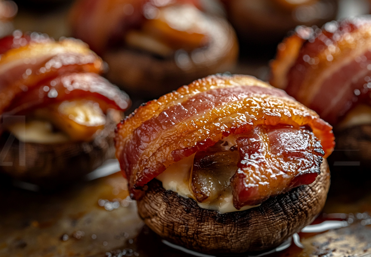Станет вашим коронным блюдом! Шампиньоны в беконе с сырной начинкой. Эти ароматные грибочки в хрустящем беконе станут настоящим хитом вашего застолья. Нежная сырная начинка с обжаренными шампиньонами и луком в сочетании с пикантным соусом барбекю покорит даже самых взыскательных гурманов.