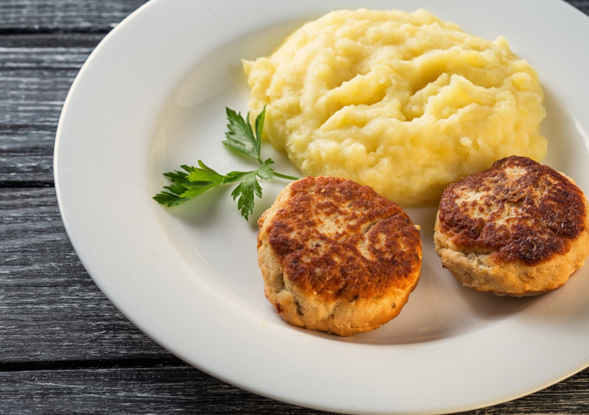 Расчет производился с учетом того, что для приготовления двух порций котлет с пюре необходимо 400 г мясного фарша, четыре картофелины, куриное яйцо, луковица, 50 г сливочного масла, 25 мл растительного масла, зелень и соль. В середине прошлого года максимальная стоимость такого продуктового набора составляла 262,52 рубля.