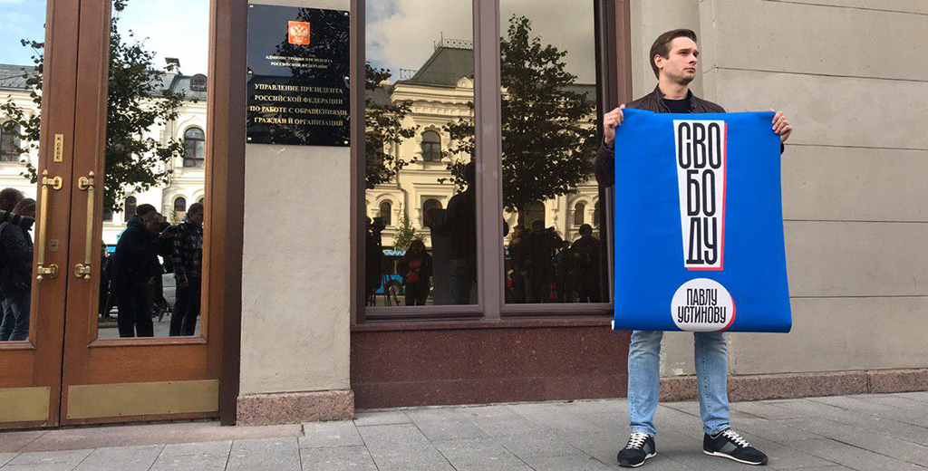 В последние дни десятки российских актёров, в том числе таких известных, как Сергей Безруков, Александр Паль и другие, выступили в защиту одного из осуждённых по «московскому делу» — их молодого коллеги Павла Устинова. 16 сентября Тверской суд приговорил его к трём с половиной годам колонии общего режима. Суд признал его виновным в применении опасного для здоровья насилия к омоновцу (ч. 2 ст. 318 УК). По версии следствия и суда, Устинов участвовал в несогласованной акции 3 августа, за что его задержали. При этом, говорится в постановлении суда, он активно сопротивлялся и вывихнул плечо сотруднику ОМОНа, чем нанёс тому физические и нравственные страдания.