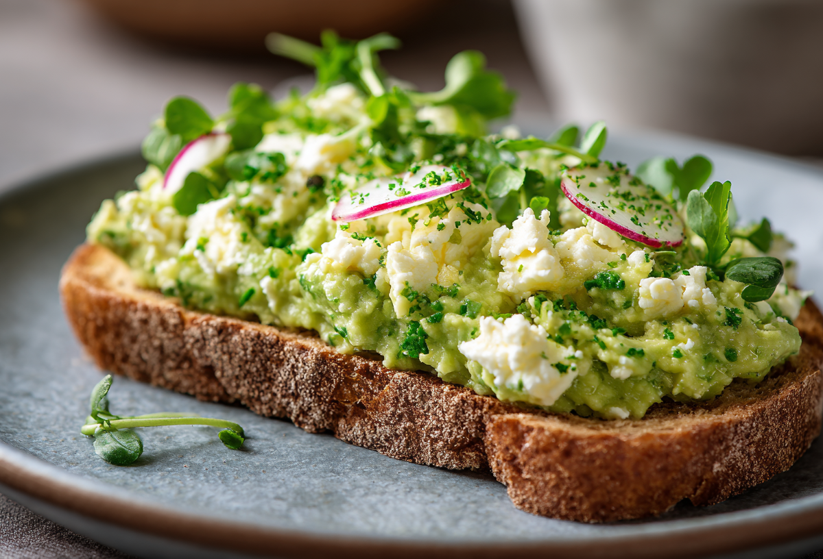 Разомните вилкой в миске мякоть одного спелого авокадо до состояния крема с мелкими кусочками. Добавьте 100 граммов нежирного зернистого творога (или мягкого творожного сыра). Влейте столовую ложку свежего лимонного сока — это придаст свежесть и сохранит цвет. Мелко порубите 2–3 веточки свежей кинзы (или петрушки) и добавьте один небольшой зубчик чеснока, пропущенный через пресс. Смешайте все ингредиенты в миске энергичными движениями. Приправьте морской солью и свежемолотым черным перцем по вкусу. Для пикантности можно добавить щепотку молотого кумина (зиры). Готовую намазку сразу нанесите на поджаренный цельнозерновой хлеб или хлебец. Украсьте ломтиком редиса или микрозеленью. Наслаждайтесь мгновенно! Храните остаток в герметичном контейнере в холодильнике до 24 часов, прикрыв пищевой пленкой. Вкусно, сытно и очень полезно!