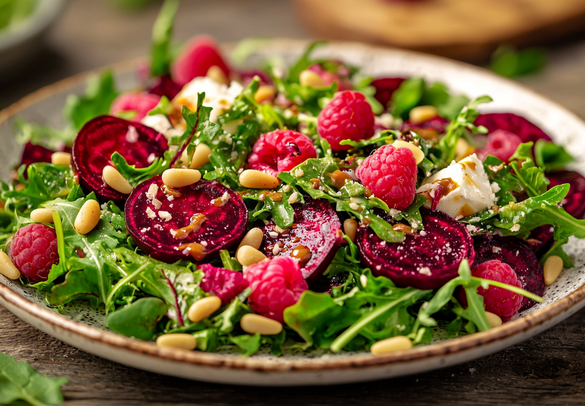 Этот салат полностью меняет представление о свекле — он получается нежным и удивительно вкусным. Запеченная свекла в сочетании с пряным соусом и ягодами создает баланс сладости и пикантности.