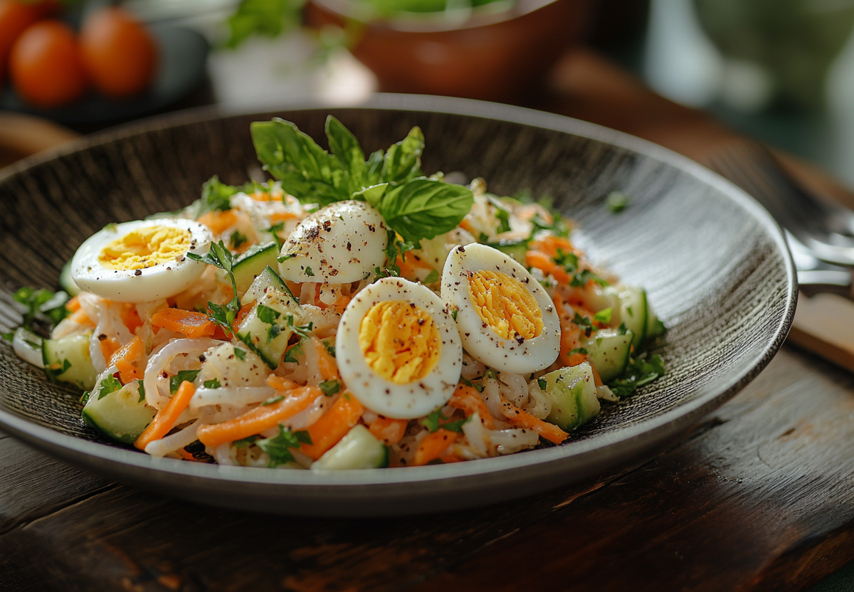 - Смешать все ингредиенты в салатнике и подавать к столу.