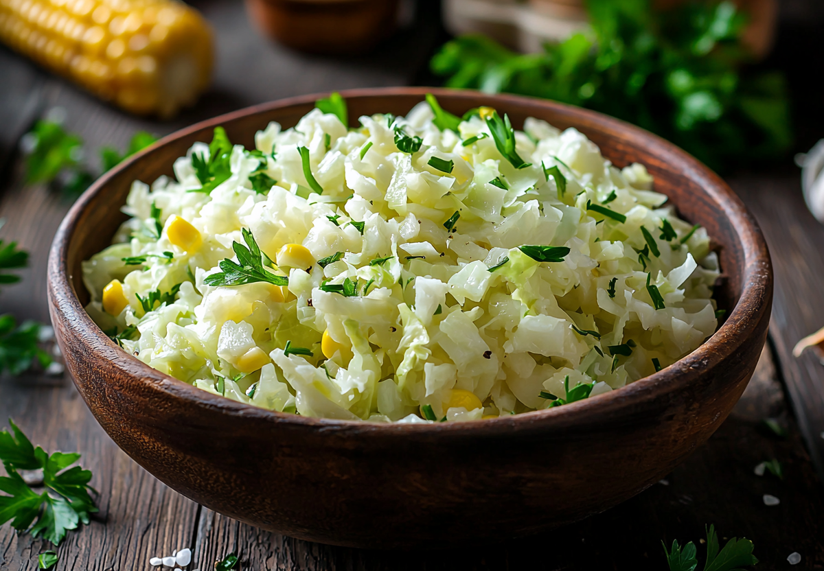 Капусту шинкую тонко, сыр натираю на крупной терке, смешиваю с кукурузой и зеленью. Добавляю выдавленный чеснок, майонез, солю и перчу. Все просто, быстро и очень вкусно — отличный вариант для легкого обеда или дружеского пикника. Попробуйте, не пожалеете!