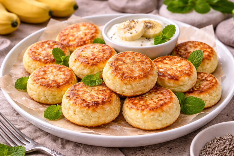 Раньше сырники у меня всегда жарились на сковороде, а теперь перешла на духовку — и назад уже не хочется. Никакого масла, никакого сахара, а результат получается настолько удачным, что едят их все, даже те, кто про «ПП» слышать не хочет. Я готовлю их себе на похудении, а семья просто просит добавку. Вся сладость здесь от спелых бананов. Они делают сырники мягкими, ароматными и совсем не пресными.
