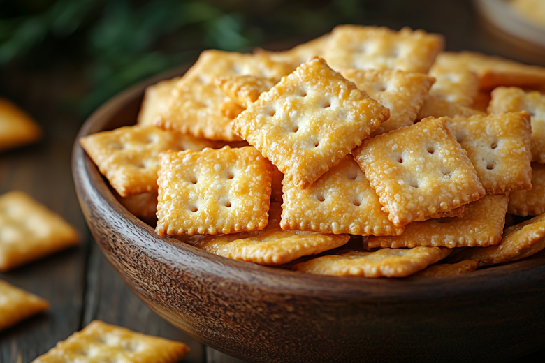 Рецепт: натрите 200 г твердого сыра (чеддер или пармезан), смешайте с 100 г размягченного сливочного масла и 150 г просеянной муки. Замесите упругое тесто, скатайте в шар и охладите 30 минут в холодильнике. Раскатайте между двумя листами пергамента в пласт толщиной 2–3 мм, нарежьте ромбиками или квадратами. Переложите на сухой противень с пергаментом, посыпьте морской солью или семенами кунжута. Выпекайте 10–12 минут при 180 °C до золотистого края.