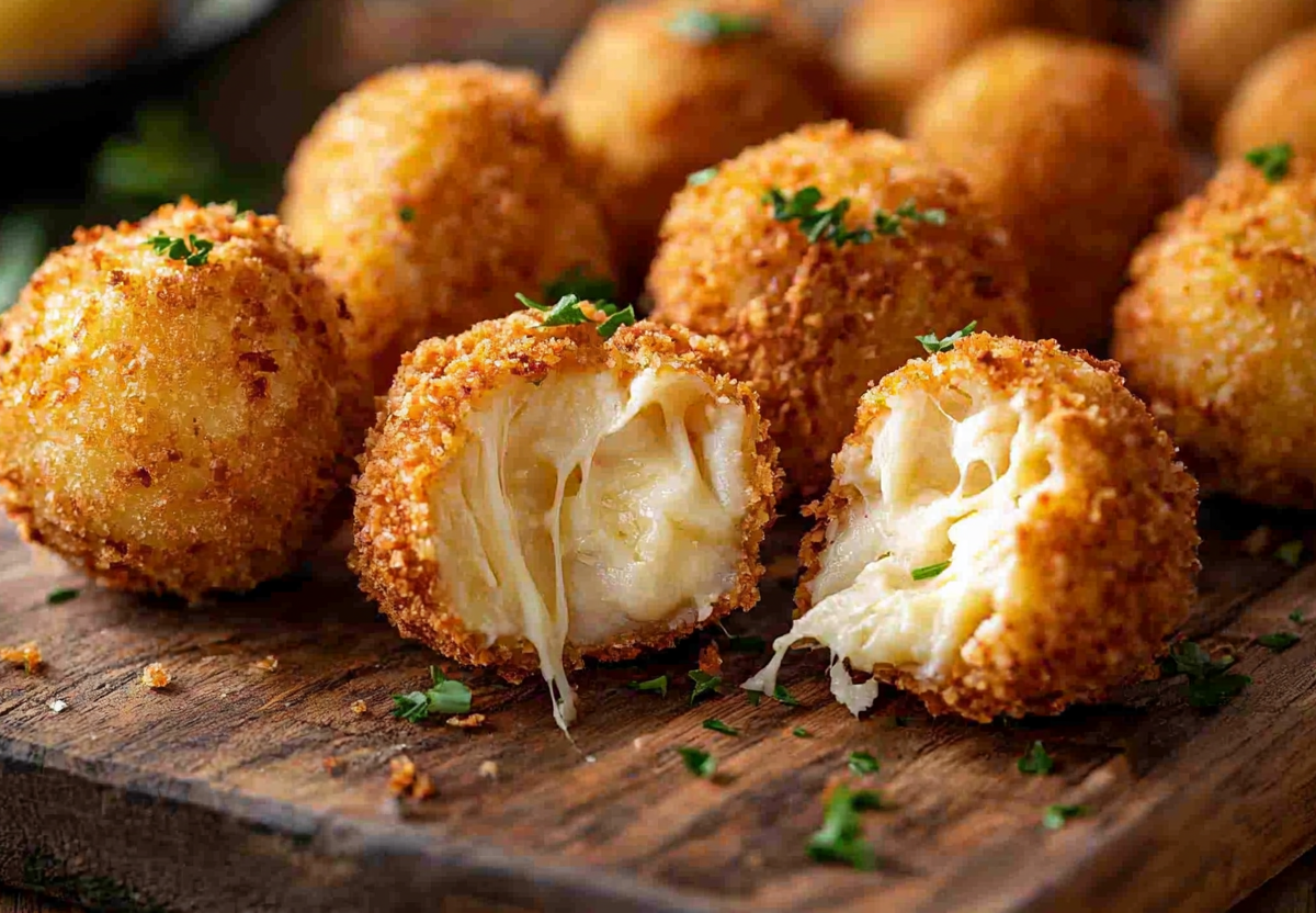 Сырные шарики в чипсовой крошке! Вкусняшки с тянущейся начинкой. Идеальная горячая закуска для дружеских посиделок! Всего 20 минут — и у вас на столе золотистые шарики с хрустящей корочкой и невероятно тягучей моцареллой внутри.